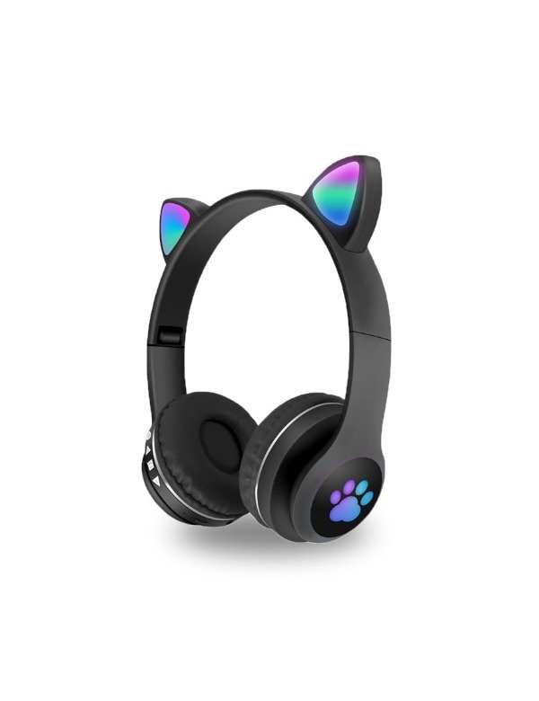 Estos auriculares inalámbricos te ofrecen la comodidad de conexión bluetooth o por cable 3.5mm, con un diseño de orejas de gato con luces RGB!